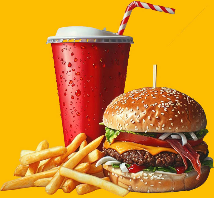 4 Burgers + 2 Fries + 2 Drinks Perfect for families or group cravings.